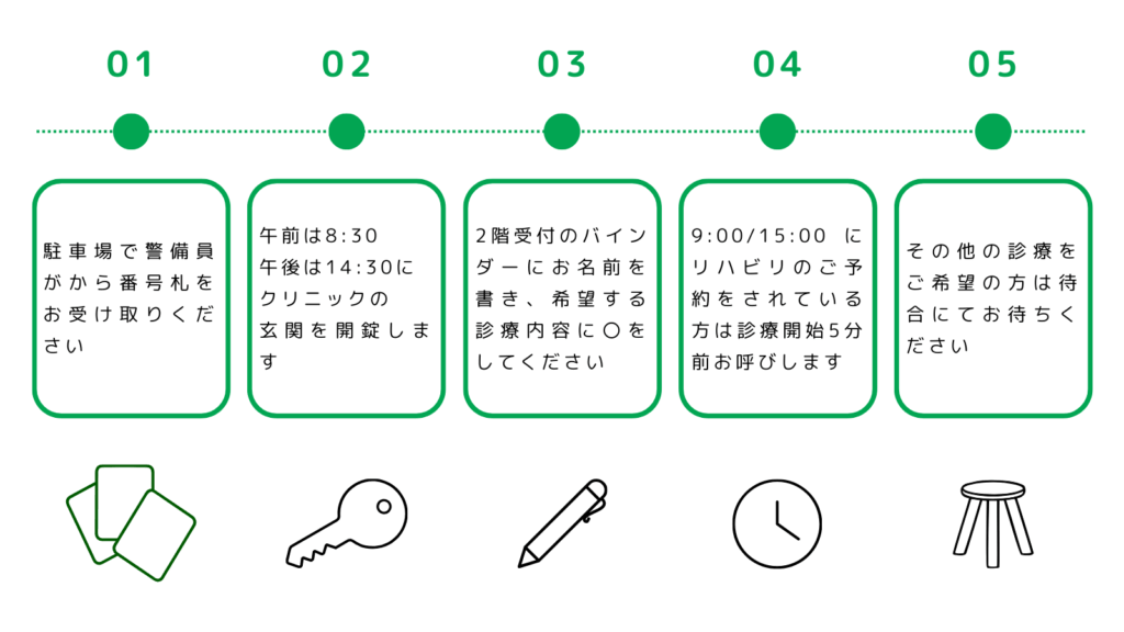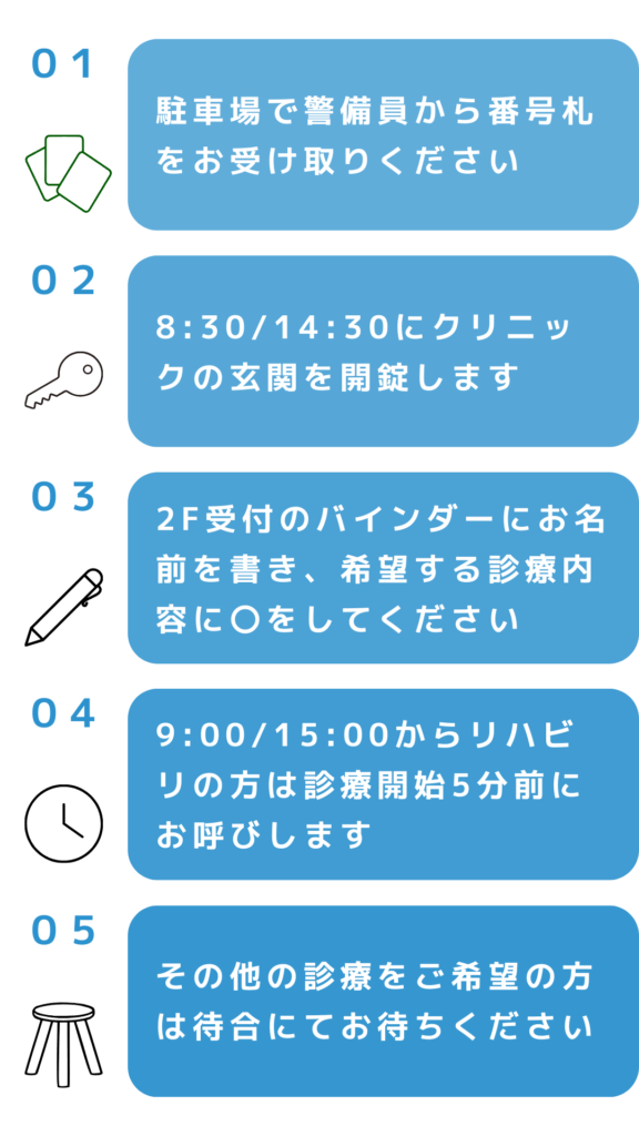 ※診療内容によって順番が前後する場合がありますのでご了承ください。